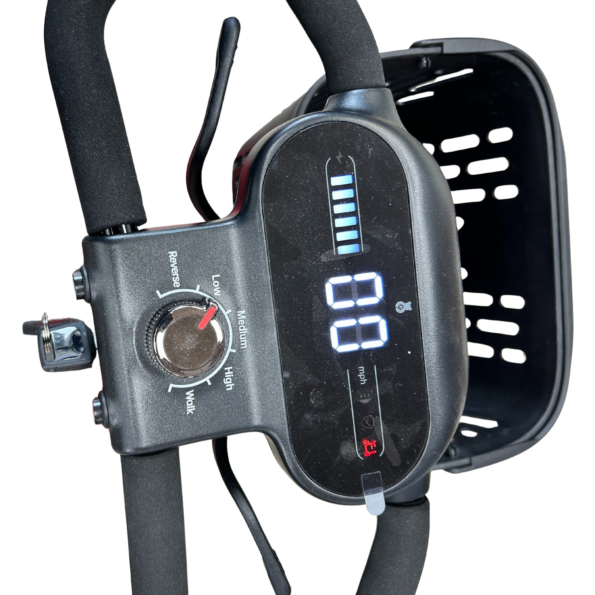 Engineered for comfort, style, and portability, this sleek red 4-wheel mobility scooter is the perfect solution for users on the go. Weighing just 32 kg (71 lbs), it folds flat in seconds for effortless storage and transport. The generously padded seat and backrest, along with modern armrests, provide exceptional comfort, while a spacious front basket offers practical storage.